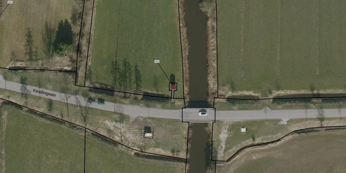 Keatlingwier 2 is gelegen op kadastraal perceel WTG01A964. Deze kadastrale aanduiding is uniek en wordt gebruikt door het Kadaster om eigendomsrechten en andere zakelijke rechten vast te leggen. Het perceel maakt onderdeel uit van de kadastrale gemeente Westergeest.
