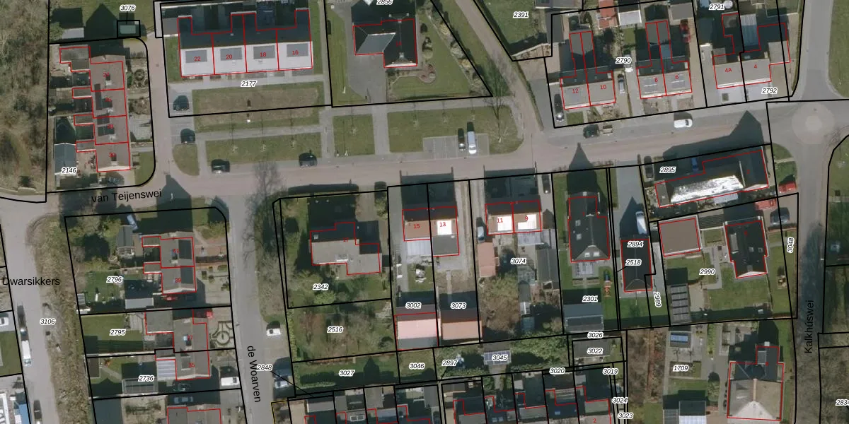 Gebruik de zoekbalk of klik op een perceel voor informatie over de adressen binnen dit perceel.