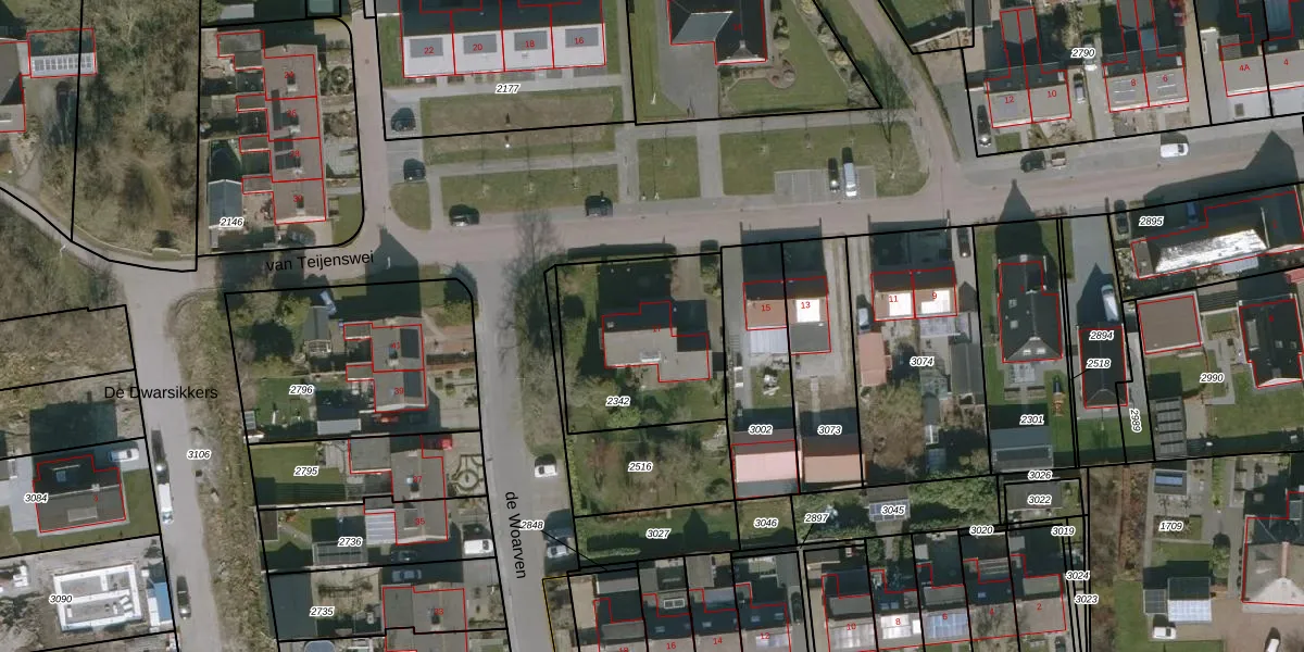 Gebruik de zoekbalk of klik op een perceel voor informatie over de adressen binnen dit perceel.