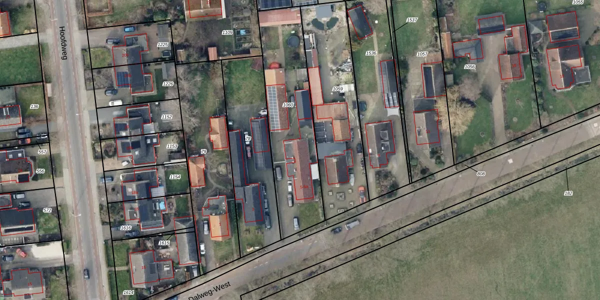 Het perceel waarop Dalweg-West 5-a staat heeft een oppervlakte van 1110 m². Dit is een zeer groot perceel. De perceeloppervlakte wordt geregistreerd door het Kadaster. Gedetailleerde informatie over de maten van dit perceel kunt u vinden in het rapport Kadastrale kaart met maatvoering van Dalweg-West 5-a.