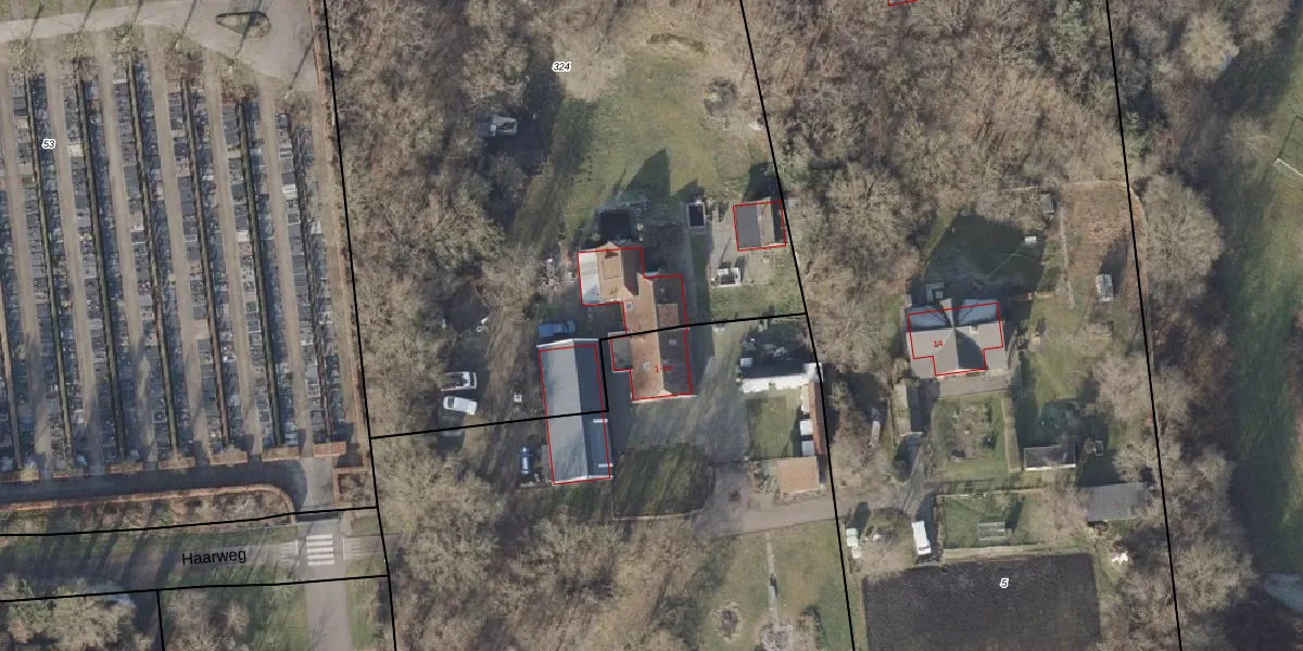 Het perceel waarop Haarweg 1-a staat heeft een oppervlakte van 5305 m². Dit is een zeer groot perceel. De perceeloppervlakte wordt geregistreerd door het Kadaster. Gedetailleerde informatie over de maten van dit perceel kunt u vinden in het rapport Kadastrale kaart met maatvoering van Haarweg 1-a.