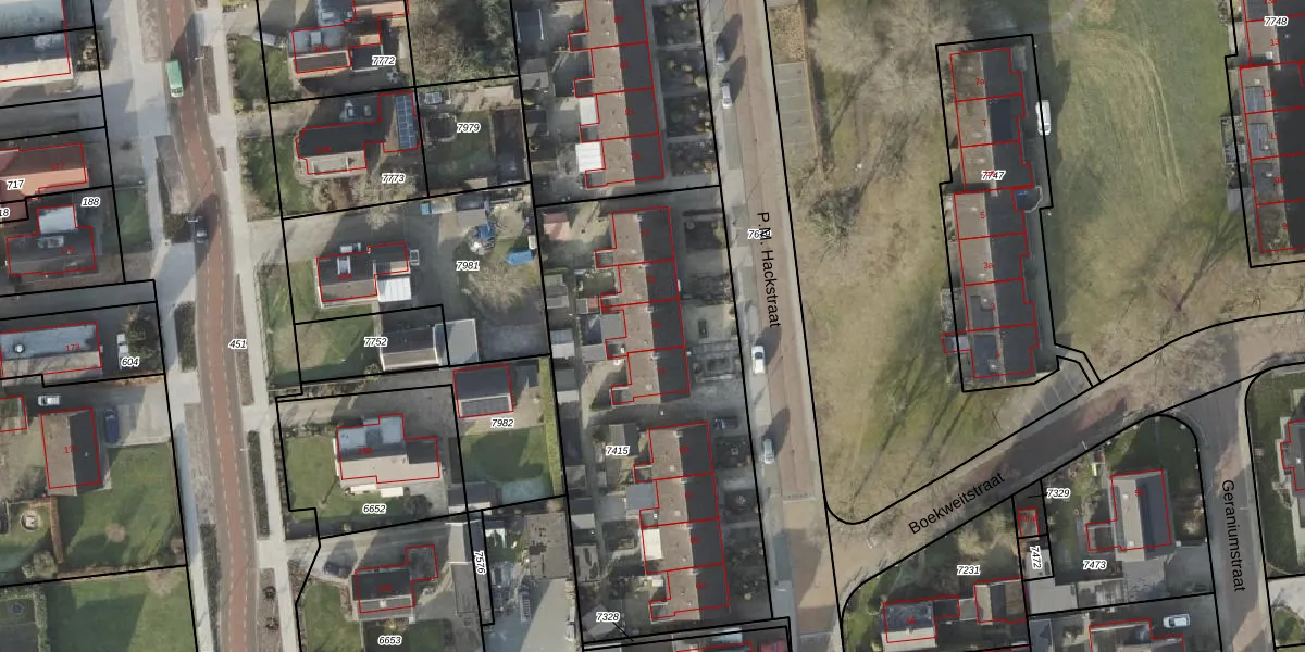 Het perceel waarop P.M. Hackstraat 73 staat heeft een oppervlakte van 1982 m². Dit is een zeer groot perceel. De perceeloppervlakte wordt geregistreerd door het Kadaster. Gedetailleerde informatie over de maten van dit perceel kunt u vinden in het rapport Kadastrale kaart met maatvoering van P.M. Hackstraat 73.