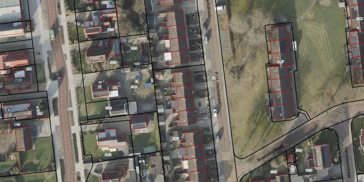 Het perceel waarop P.M. Hackstraat 75 staat heeft een oppervlakte van 1982 m². Dit is een zeer groot perceel. De perceeloppervlakte wordt geregistreerd door het Kadaster. Gedetailleerde informatie over de maten van dit perceel kunt u vinden in het rapport Kadastrale kaart met maatvoering van P.M. Hackstraat 75.