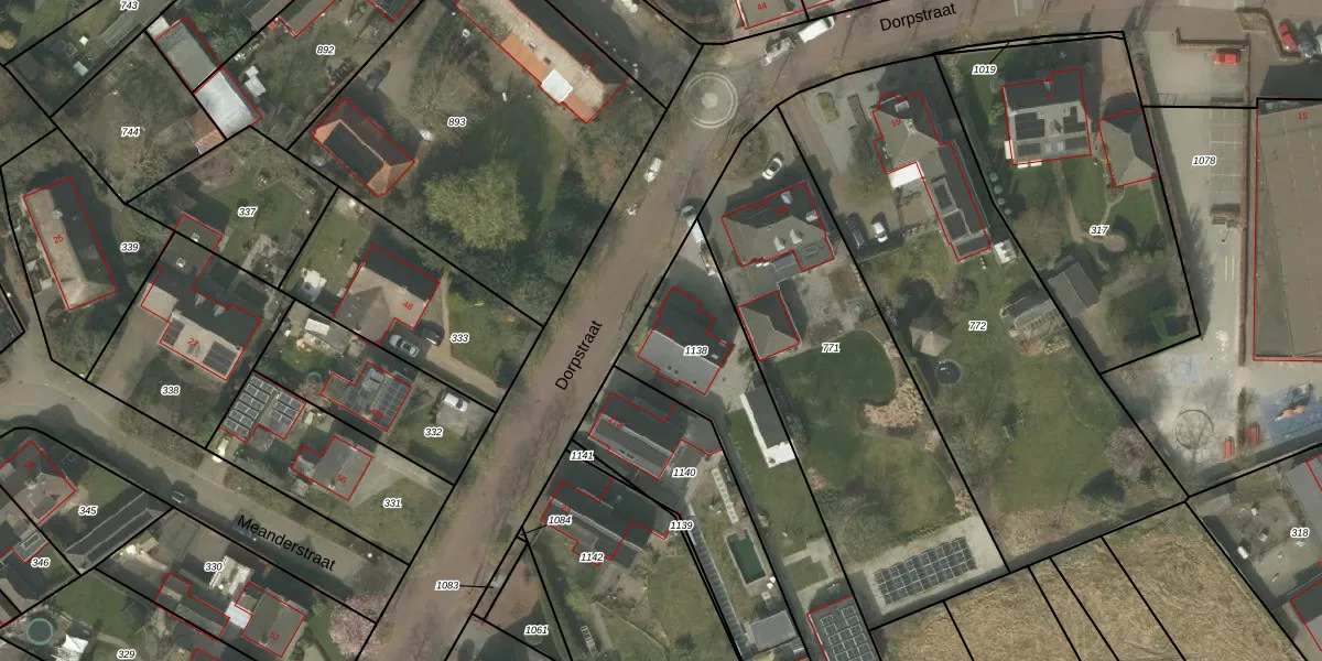 Het perceel waarop Dorpstraat 21 staat heeft een oppervlakte van 874 m². Dit is een groot perceel. De perceeloppervlakte wordt geregistreerd door het Kadaster. Gedetailleerde informatie over de maten van dit perceel kunt u vinden in het rapport Kadastrale kaart met maatvoering van Dorpstraat 21.