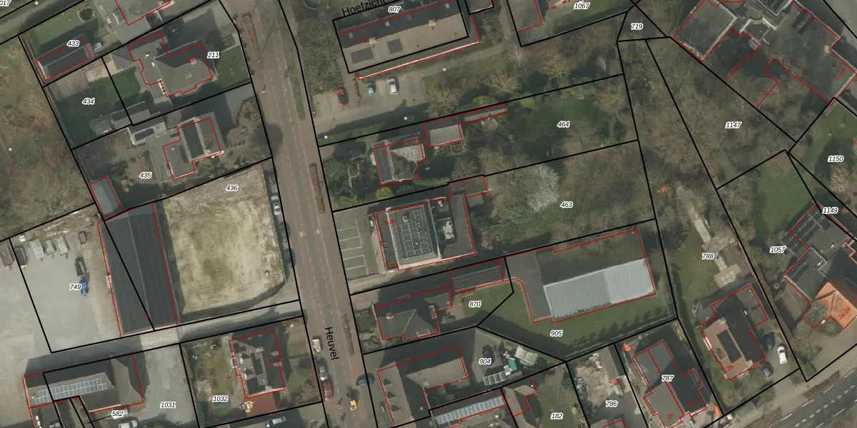 Het perceel waarop Heuvel 8-b staat heeft een oppervlakte van 1423 m². Dit is een zeer groot perceel. De perceeloppervlakte wordt geregistreerd door het Kadaster. Gedetailleerde informatie over de maten van dit perceel kunt u vinden in het rapport Kadastrale kaart met maatvoering van Heuvel 8-b.