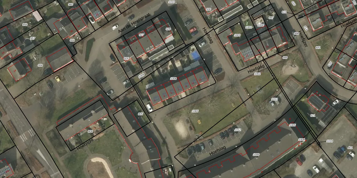 Het perceel waarop Hoefslag 7 staat heeft een oppervlakte van 894 m². Dit is een groot perceel. De perceeloppervlakte wordt geregistreerd door het Kadaster. Gedetailleerde informatie over de maten van dit perceel kunt u vinden in het rapport Kadastrale kaart met maatvoering van Hoefslag 7.