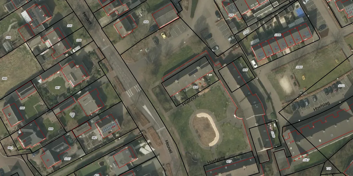 Het perceel waarop Hoefzicht 13 staat heeft een oppervlakte van 458 m². Dit is een groot perceel. De perceeloppervlakte wordt geregistreerd door het Kadaster. Gedetailleerde informatie over de maten van dit perceel kunt u vinden in het rapport Kadastrale kaart met maatvoering van Hoefzicht 13.