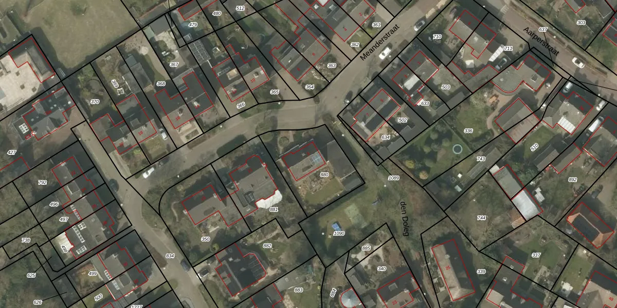 Het perceel waarop Meanderstraat 9 staat heeft een oppervlakte van 568 m². Dit is een groot perceel. De perceeloppervlakte wordt geregistreerd door het Kadaster. Gedetailleerde informatie over de maten van dit perceel kunt u vinden in het rapport Kadastrale kaart met maatvoering van Meanderstraat 9.