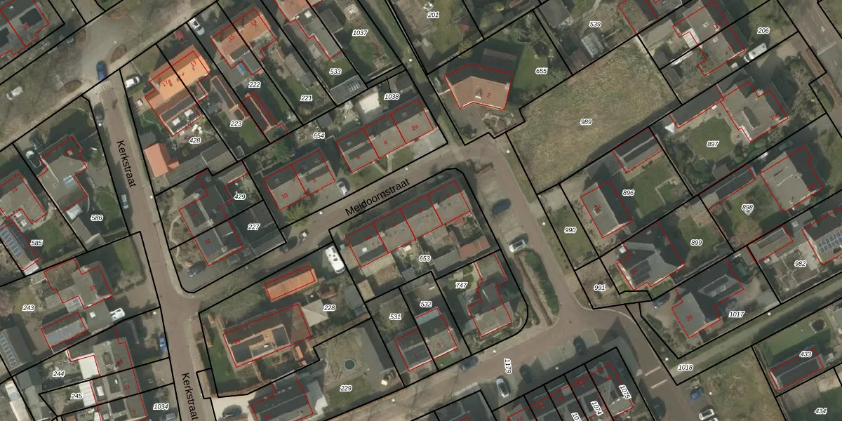 Meidoornstraat 9 is gelegen op kadastraal perceel WTH00E653. Deze kadastrale aanduiding is uniek en wordt gebruikt door het Kadaster om eigendomsrechten en andere zakelijke rechten vast te leggen. Het perceel maakt onderdeel uit van de kadastrale gemeente Westerhoven.