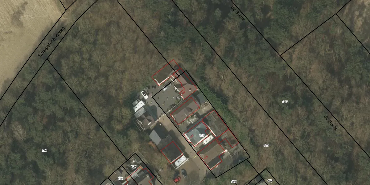 Het adres ligt op het perceel WTH00-E-819, dat zich in de kadastrale gemeente Westerhoven bevindt. Het perceel is kleiner dan gemiddeld in Westerhoven. Het perceel is 1276 m² groot, terwijl het gemiddelde ligt op 5203,17 m². Het kleinste perceel in de kadastrale gemeente is 1 m² groot. De grootste perceeloppervlakte is 79,6 ha. Er zijn 4 adressen aanwezig op het perceel. De huidige grenzen van het perceel zijn digitaal in de Basisregistratie Kadaster (BRK) geregistreerd op 01-09-2011.