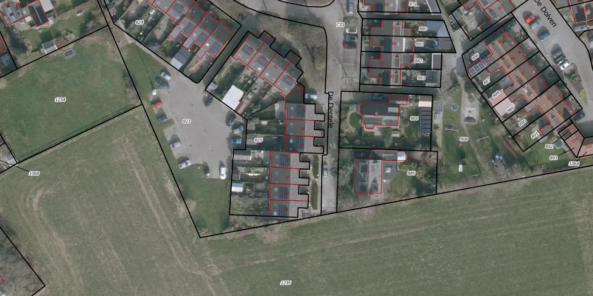 Het perceel waarop De Dentele 30 staat heeft een oppervlakte van 1509 m². Dit is een zeer groot perceel. De perceeloppervlakte wordt geregistreerd door het Kadaster. Gedetailleerde informatie over de maten van dit perceel kunt u vinden in het rapport Kadastrale kaart met maatvoering van De Dentele 30.