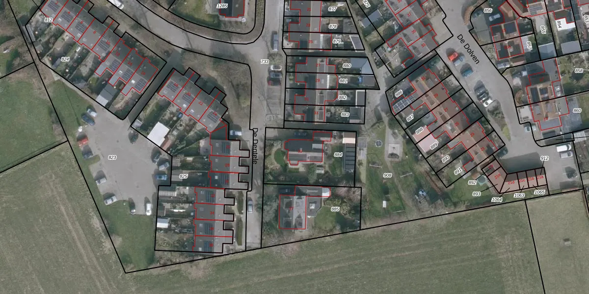 Het perceel waarop De Dentele 35 staat heeft een oppervlakte van 589 m². Dit is een groot perceel. De perceeloppervlakte wordt geregistreerd door het Kadaster. Gedetailleerde informatie over de maten van dit perceel kunt u vinden in het rapport Kadastrale kaart met maatvoering van De Dentele 35.