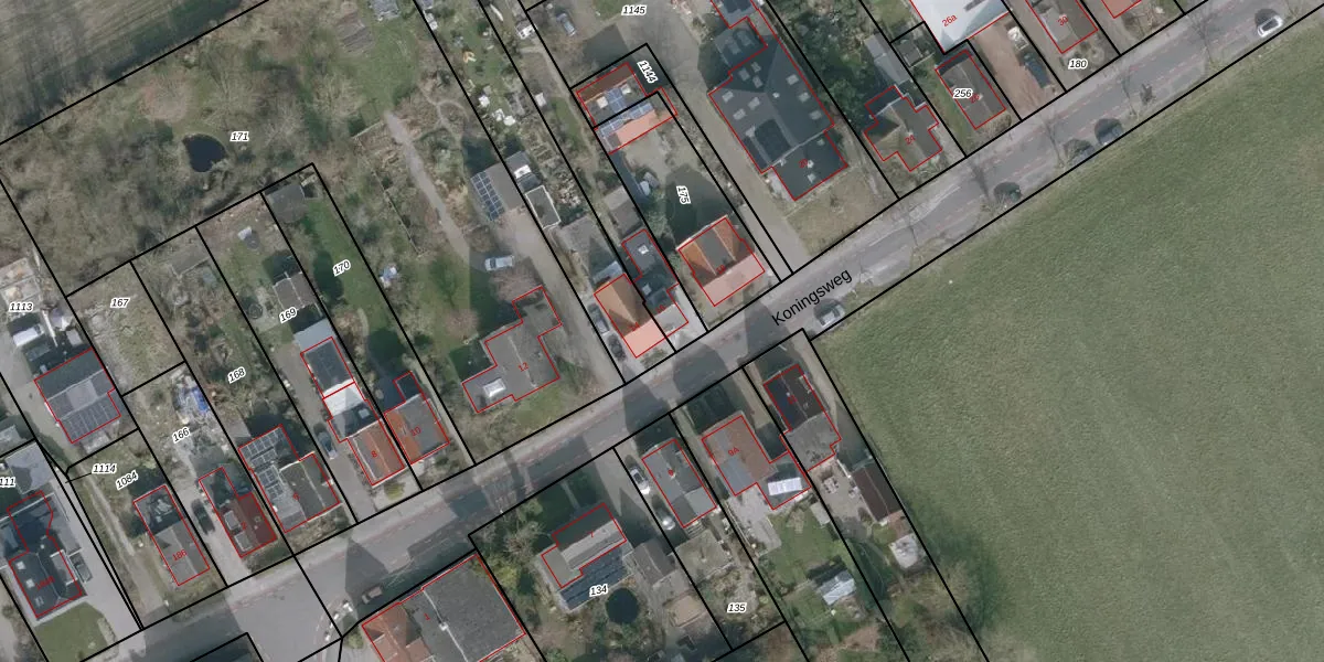 Het perceel waarop Koningsweg 16 staat heeft een oppervlakte van 440 m². Dit is een groot perceel. De perceeloppervlakte wordt geregistreerd door het Kadaster. Gedetailleerde informatie over de maten van dit perceel kunt u vinden in het rapport Kadastrale kaart met maatvoering van Koningsweg 16.