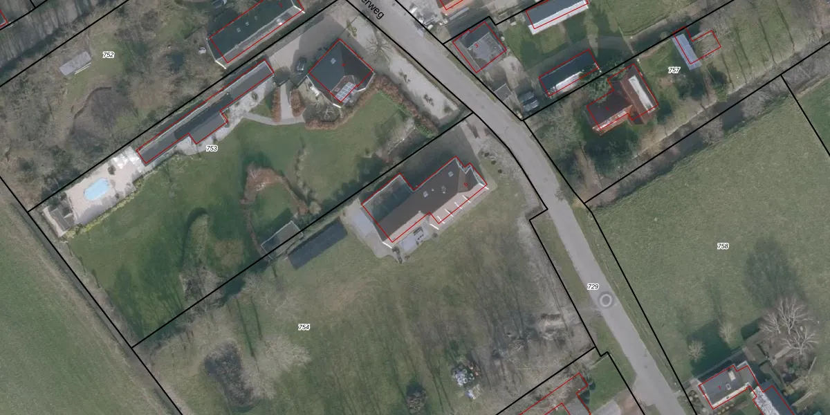 Het adres ligt op het perceel WRG01-I-754, dat zich in de kadastrale gemeente Wieringen bevindt. Het perceel is kleiner dan gemiddeld in Wieringen. Het perceel is 6100 m² groot, terwijl het gemiddelde ligt op 3,5 ha. Het kleinste perceel in de kadastrale gemeente is 0 m² groot. De grootste perceeloppervlakte is 55,10 km². Er zijn geen andere adressen aanwezig op het perceel. De laatste wijziging in het de Basisregistratie Kadaster (BRK) was op 22-01-2001.