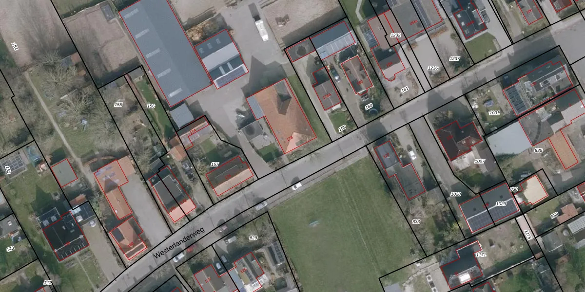 Het perceel waarop Westerlanderweg 178 staat heeft een oppervlakte van 3,9 ha. Dit is een zeer groot perceel. De perceeloppervlakte wordt geregistreerd door het Kadaster. Gedetailleerde informatie over de maten van dit perceel kunt u vinden in het rapport Kadastrale kaart met maatvoering van Westerlanderweg 178.