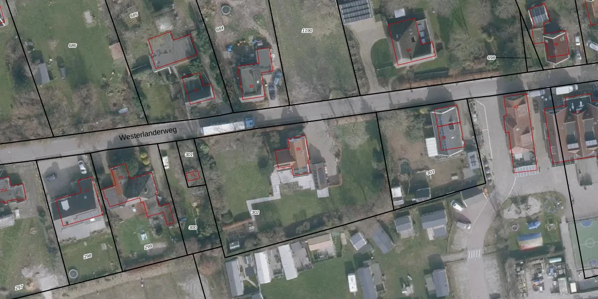 Het perceel waarop Westerlanderweg 35 staat heeft een oppervlakte van 2273 m². Dit is een zeer groot perceel. De perceeloppervlakte wordt geregistreerd door het Kadaster. Gedetailleerde informatie over de maten van dit perceel kunt u vinden in het rapport Kadastrale kaart met maatvoering van Westerlanderweg 35.