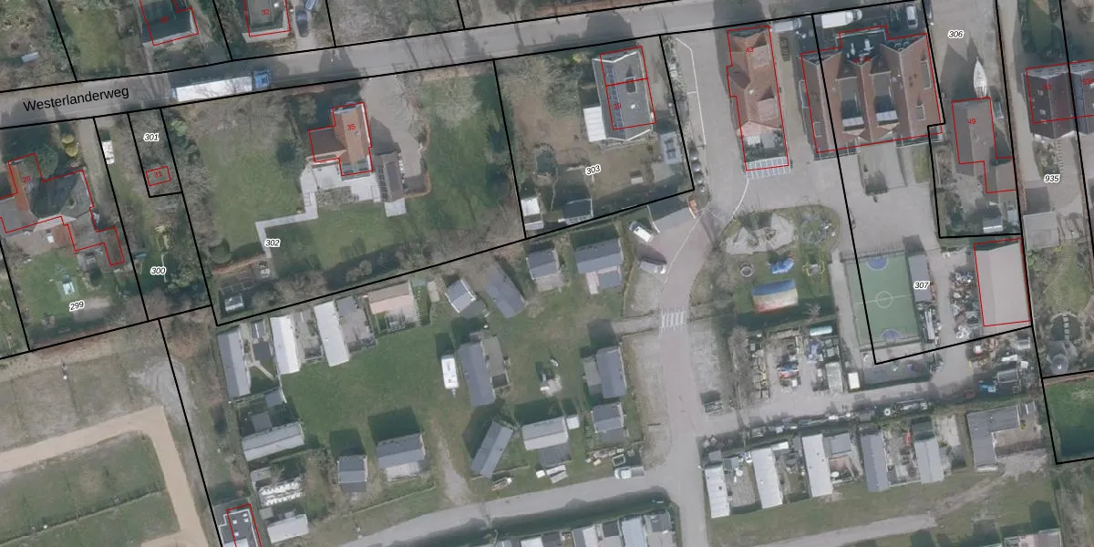 Het perceel waarop Westerlanderweg 43-150 staat heeft een oppervlakte van 2,1 ha. Dit is een zeer groot perceel. De perceeloppervlakte wordt geregistreerd door het Kadaster. Gedetailleerde informatie over de maten van dit perceel kunt u vinden in het rapport Kadastrale kaart met maatvoering van Westerlanderweg 43-150.