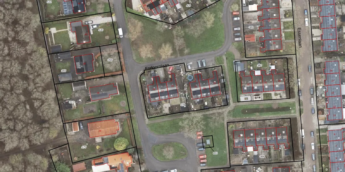 Esdoornlaan 19 is gelegen op kadastraal perceel SDA00K378. Deze kadastrale aanduiding is uniek en wordt gebruikt door het Kadaster om eigendomsrechten en andere zakelijke rechten vast te leggen. Het perceel maakt onderdeel uit van de kadastrale gemeente Scheemda.