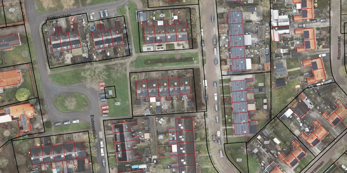 Essenlaan 14 is gelegen op kadastraal perceel SDA00K384. Deze kadastrale aanduiding is uniek en wordt gebruikt door het Kadaster om eigendomsrechten en andere zakelijke rechten vast te leggen. Het perceel maakt onderdeel uit van de kadastrale gemeente Scheemda.