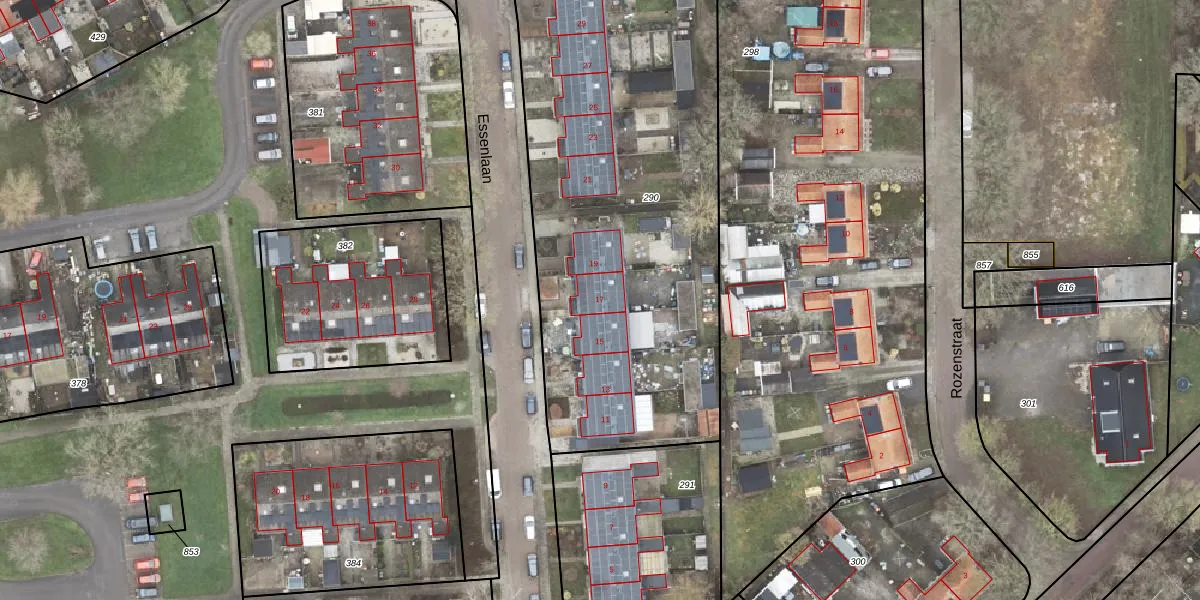 Het perceel waarop Essenlaan 17 staat heeft een oppervlakte van 2455 m². Dit is een zeer groot perceel. De perceeloppervlakte wordt geregistreerd door het Kadaster. Gedetailleerde informatie over de maten van dit perceel kunt u vinden in het rapport Kadastrale kaart met maatvoering van Essenlaan 17.