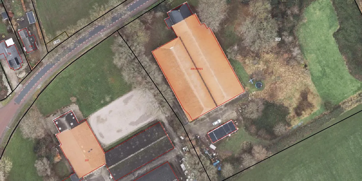 Het perceel waarop Hoofdweg 209-F staat heeft een oppervlakte van 1,3 ha. Dit is een zeer groot perceel. De perceeloppervlakte wordt geregistreerd door het Kadaster. Gedetailleerde informatie over de maten van dit perceel kunt u vinden in het rapport Kadastrale kaart met maatvoering van Hoofdweg 209-F.