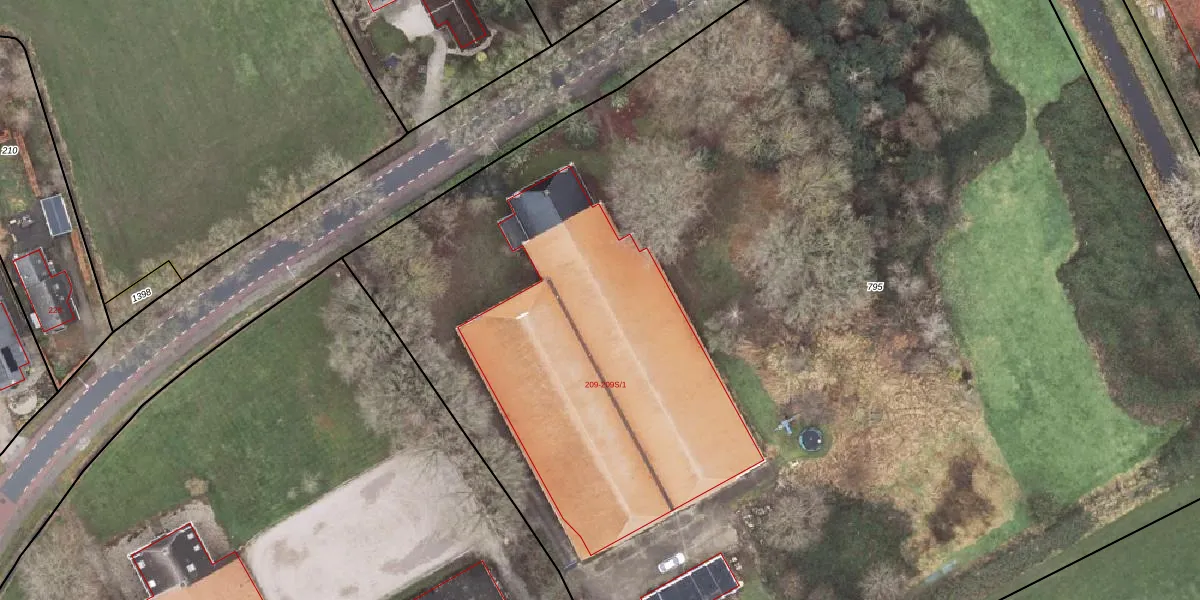 Het perceel waarop Hoofdweg 209-C-1 staat heeft een oppervlakte van 1,3 ha. Dit is een zeer groot perceel. De perceeloppervlakte wordt geregistreerd door het Kadaster. Gedetailleerde informatie over de maten van dit perceel kunt u vinden in het rapport Kadastrale kaart met maatvoering van Hoofdweg 209-C-1.
