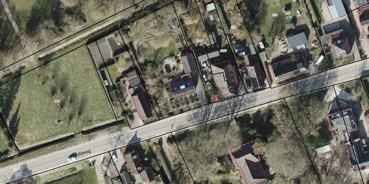 Het perceel waarop Hoofdweg 48 staat heeft een oppervlakte van 1755 m². Dit is een zeer groot perceel. De perceeloppervlakte wordt geregistreerd door het Kadaster. Gedetailleerde informatie over de maten van dit perceel kunt u vinden in het rapport Kadastrale kaart met maatvoering van Hoofdweg 48.