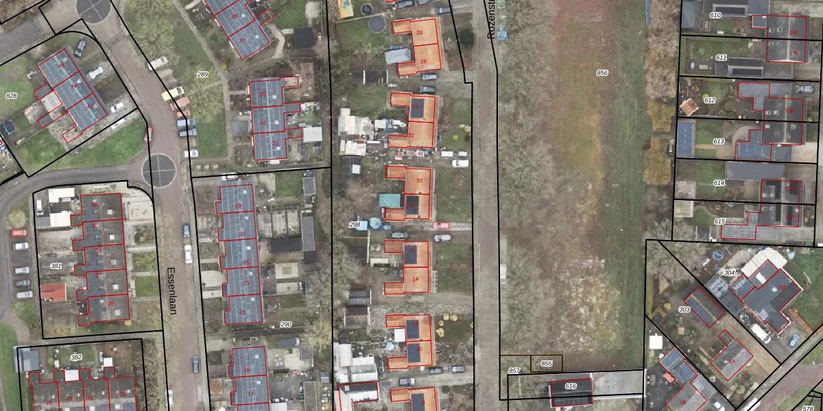Rozenstraat 18 is gelegen op kadastraal perceel SDA00K298. Deze kadastrale aanduiding is uniek en wordt gebruikt door het Kadaster om eigendomsrechten en andere zakelijke rechten vast te leggen. Het perceel maakt onderdeel uit van de kadastrale gemeente Scheemda.
