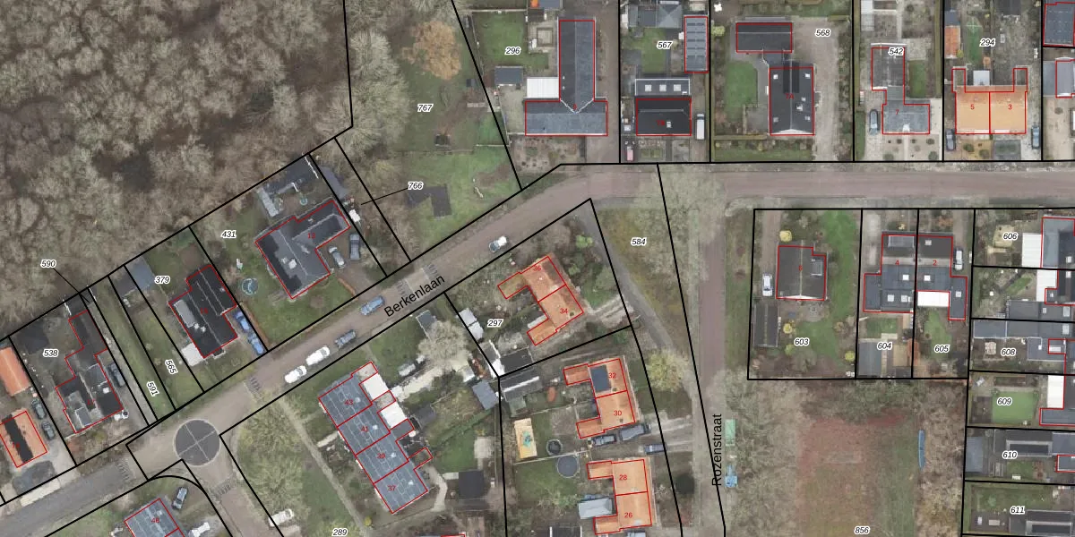 Het perceel waarop Rozenstraat 36 staat heeft een oppervlakte van 630 m². Dit is een groot perceel. De perceeloppervlakte wordt geregistreerd door het Kadaster. Gedetailleerde informatie over de maten van dit perceel kunt u vinden in het rapport Kadastrale kaart met maatvoering van Rozenstraat 36.