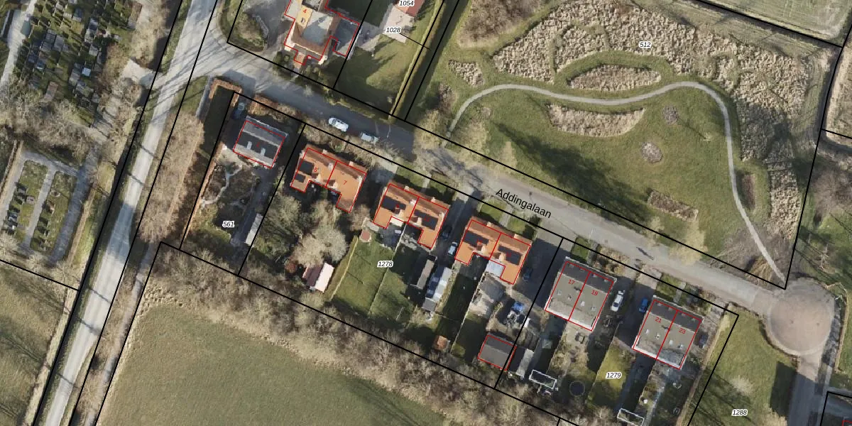 Het perceel waarop Addingalaan 11 staat heeft een oppervlakte van 2567 m². Dit is een zeer groot perceel. De perceeloppervlakte wordt geregistreerd door het Kadaster. Gedetailleerde informatie over de maten van dit perceel kunt u vinden in het rapport Kadastrale kaart met maatvoering van Addingalaan 11.