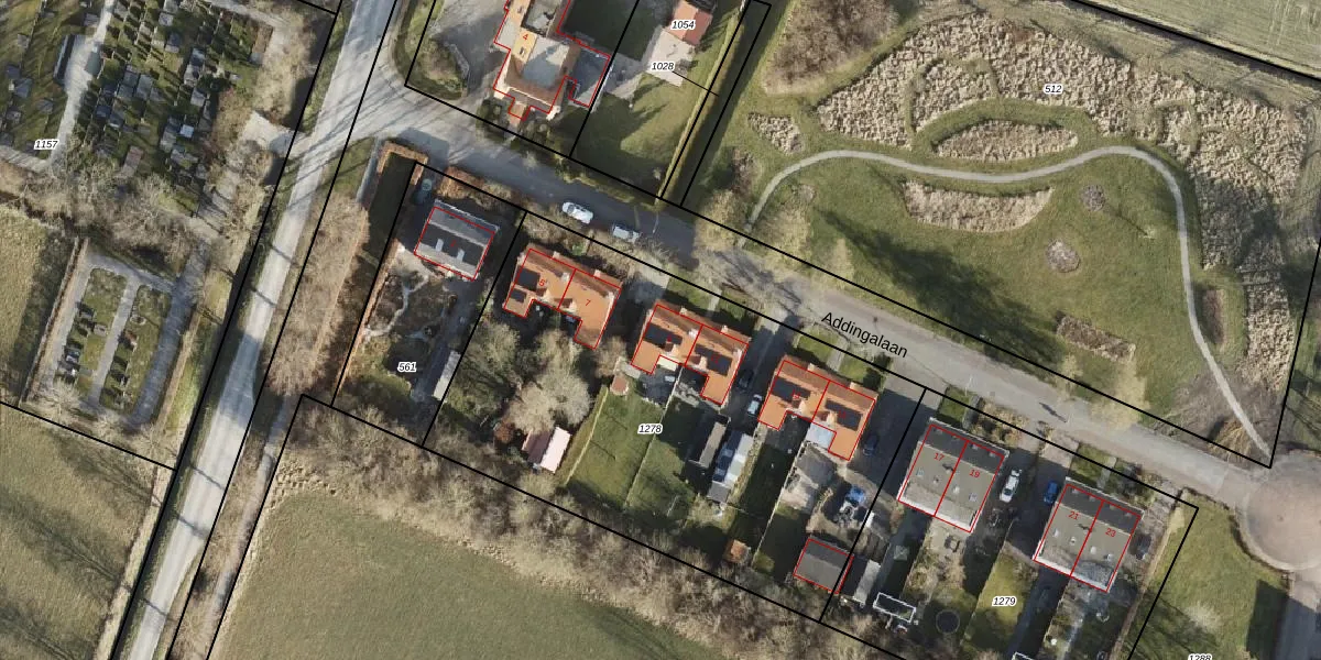 Het perceel waarop Addingalaan 9 staat heeft een oppervlakte van 2567 m². Dit is een zeer groot perceel. De perceeloppervlakte wordt geregistreerd door het Kadaster. Gedetailleerde informatie over de maten van dit perceel kunt u vinden in het rapport Kadastrale kaart met maatvoering van Addingalaan 9.