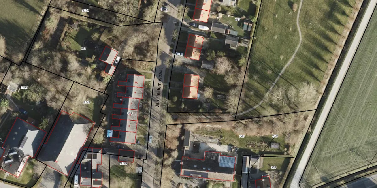 Het perceel waarop Jan Heidemastraat 2 staat heeft een oppervlakte van 4080 m². Dit is een zeer groot perceel. De perceeloppervlakte wordt geregistreerd door het Kadaster. Gedetailleerde informatie over de maten van dit perceel kunt u vinden in het rapport Kadastrale kaart met maatvoering van Jan Heidemastraat 2.