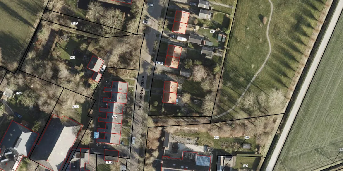 Jan Heidemastraat 4 is gelegen op kadastraal perceel ERM00F557. Deze kadastrale aanduiding is uniek en wordt gebruikt door het Kadaster om eigendomsrechten en andere zakelijke rechten vast te leggen. Het perceel maakt onderdeel uit van de kadastrale gemeente Eenrum.