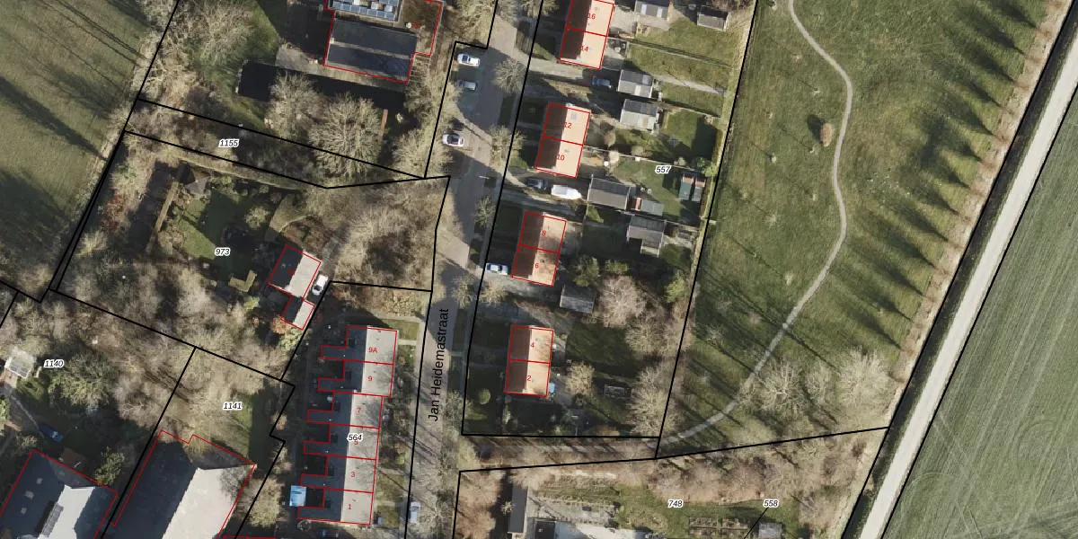 Jan Heidemastraat 6 is gelegen op kadastraal perceel ERM00F557. Deze kadastrale aanduiding is uniek en wordt gebruikt door het Kadaster om eigendomsrechten en andere zakelijke rechten vast te leggen. Het perceel maakt onderdeel uit van de kadastrale gemeente Eenrum.