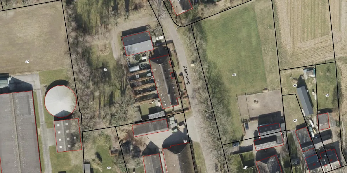 Kampweg 5 is gelegen op kadastraal perceel NOR00V31. Deze kadastrale aanduiding is uniek en wordt gebruikt door het Kadaster om eigendomsrechten en andere zakelijke rechten vast te leggen. Het perceel maakt onderdeel uit van de kadastrale gemeente Norg.