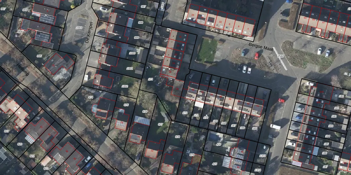 Het perceel waarop Bergse Maat 28 staat heeft een oppervlakte van 1035 m². Dit is een zeer groot perceel. De perceeloppervlakte wordt geregistreerd door het Kadaster. Gedetailleerde informatie over de maten van dit perceel kunt u vinden in het rapport Kadastrale kaart met maatvoering van Bergse Maat 28.