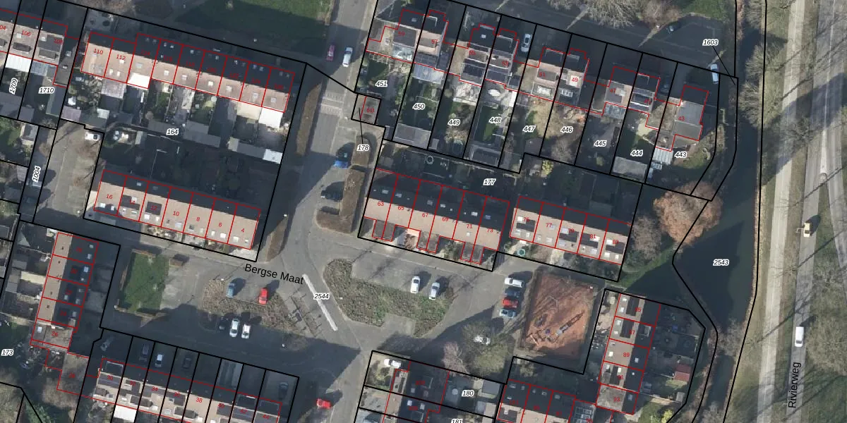 Bergse Maat 67 is gelegen op kadastraal perceel WTV00C177. Deze kadastrale aanduiding is uniek en wordt gebruikt door het Kadaster om eigendomsrechten en andere zakelijke rechten vast te leggen. Het perceel maakt onderdeel uit van de kadastrale gemeente Westervoort.