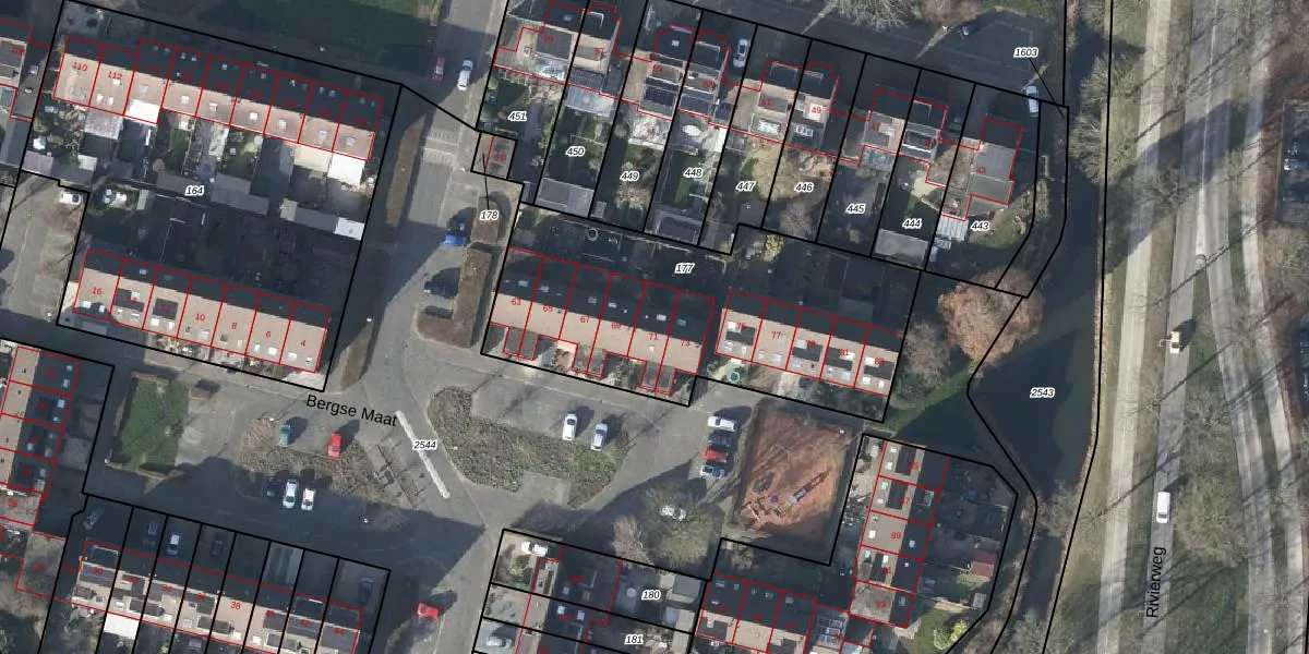 Bergse Maat 71 is gelegen op kadastraal perceel WTV00C177. Deze kadastrale aanduiding is uniek en wordt gebruikt door het Kadaster om eigendomsrechten en andere zakelijke rechten vast te leggen. Het perceel maakt onderdeel uit van de kadastrale gemeente Westervoort.