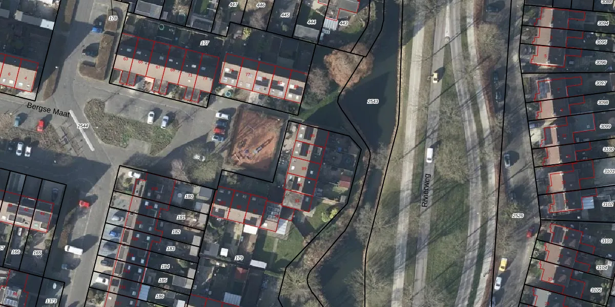 Het perceel waarop Bergse Maat 87 staat heeft een oppervlakte van 2342 m². Dit is een zeer groot perceel. De perceeloppervlakte wordt geregistreerd door het Kadaster. Gedetailleerde informatie over de maten van dit perceel kunt u vinden in het rapport Kadastrale kaart met maatvoering van Bergse Maat 87.