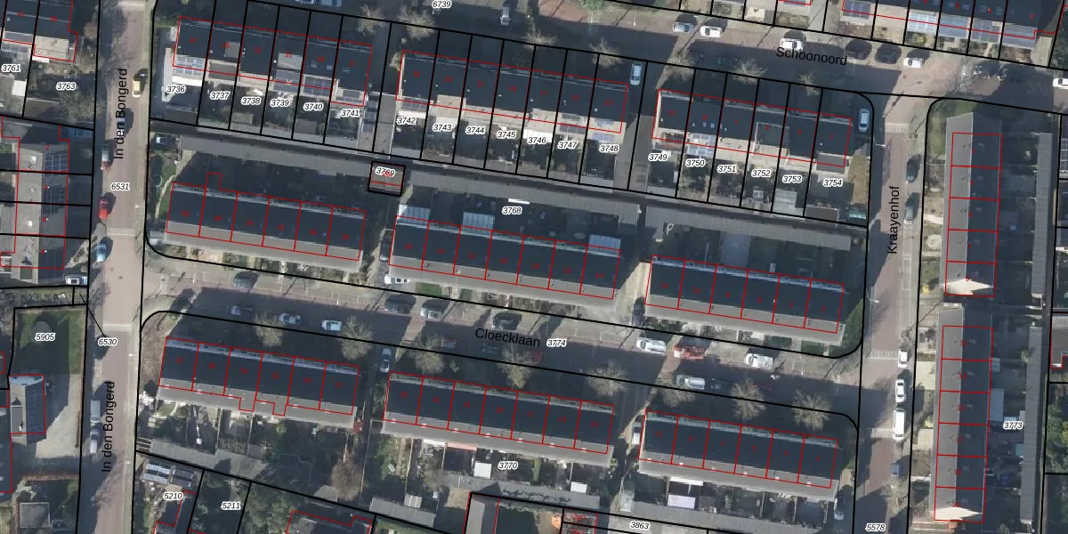Het perceel waarop Cloecklaan 18 staat heeft een oppervlakte van 3370 m². Dit is een zeer groot perceel. De perceeloppervlakte wordt geregistreerd door het Kadaster. Gedetailleerde informatie over de maten van dit perceel kunt u vinden in het rapport Kadastrale kaart met maatvoering van Cloecklaan 18.