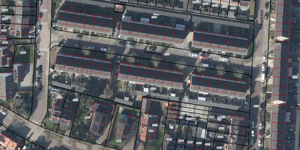 Het perceel waarop Cloecklaan 19 staat heeft een oppervlakte van 3696 m². Dit is een zeer groot perceel. De perceeloppervlakte wordt geregistreerd door het Kadaster. Gedetailleerde informatie over de maten van dit perceel kunt u vinden in het rapport Kadastrale kaart met maatvoering van Cloecklaan 19.