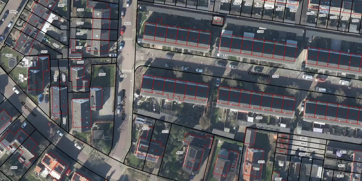 Het perceel waarop Cloecklaan 31 staat heeft een oppervlakte van 3696 m². Dit is een zeer groot perceel. De perceeloppervlakte wordt geregistreerd door het Kadaster. Gedetailleerde informatie over de maten van dit perceel kunt u vinden in het rapport Kadastrale kaart met maatvoering van Cloecklaan 31.