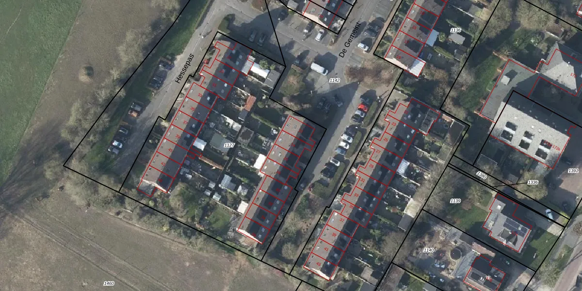 Het perceel waarop De Gemeint 14 staat heeft een oppervlakte van 3045 m². Dit is een zeer groot perceel. De perceeloppervlakte wordt geregistreerd door het Kadaster. Gedetailleerde informatie over de maten van dit perceel kunt u vinden in het rapport Kadastrale kaart met maatvoering van De Gemeint 14.