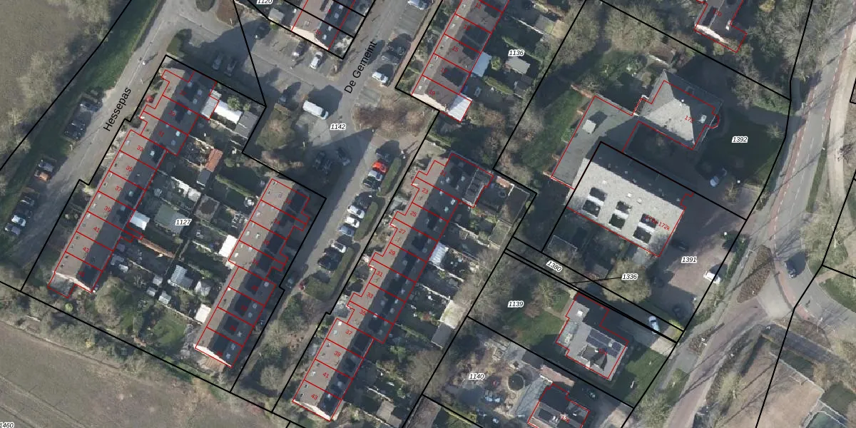 Het perceel waarop De Gemeint 25 staat heeft een oppervlakte van 4065 m². Dit is een zeer groot perceel. De perceeloppervlakte wordt geregistreerd door het Kadaster. Gedetailleerde informatie over de maten van dit perceel kunt u vinden in het rapport Kadastrale kaart met maatvoering van De Gemeint 25.
