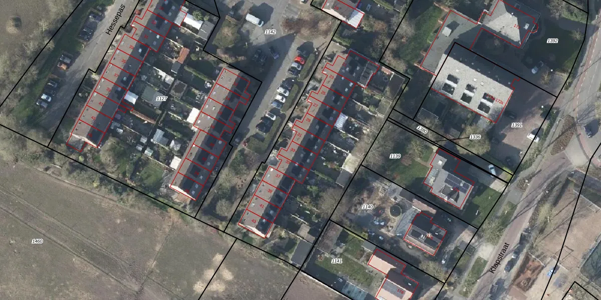 Het perceel waarop De Gemeint 33 staat heeft een oppervlakte van 4065 m². Dit is een zeer groot perceel. De perceeloppervlakte wordt geregistreerd door het Kadaster. Gedetailleerde informatie over de maten van dit perceel kunt u vinden in het rapport Kadastrale kaart met maatvoering van De Gemeint 33.