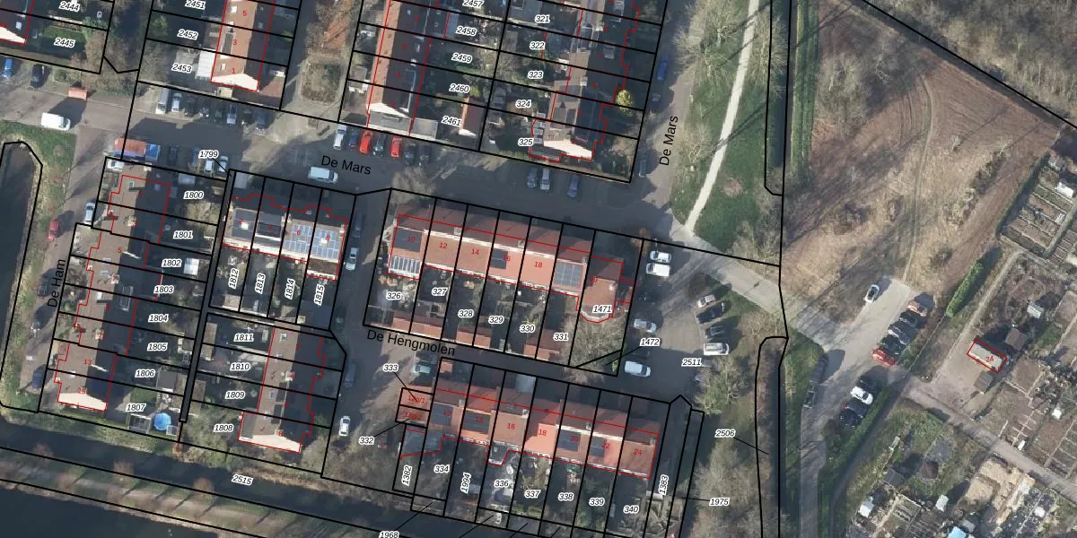 Gebruik de zoekbalk of klik op een perceel voor informatie over de adressen binnen dit perceel.