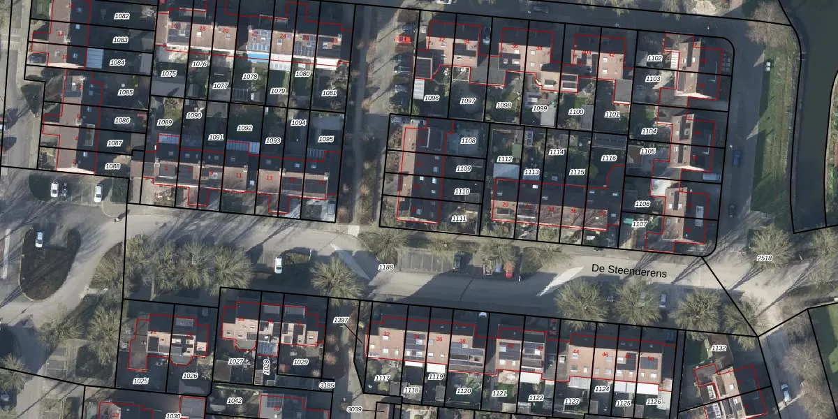 Het perceel waarop De Steenderens 27 staat heeft een oppervlakte van 182 m². Dit is een middelgroot perceel. De perceeloppervlakte wordt geregistreerd door het Kadaster. Gedetailleerde informatie over de maten van dit perceel kunt u vinden in het rapport Kadastrale kaart met maatvoering van De Steenderens 27.
