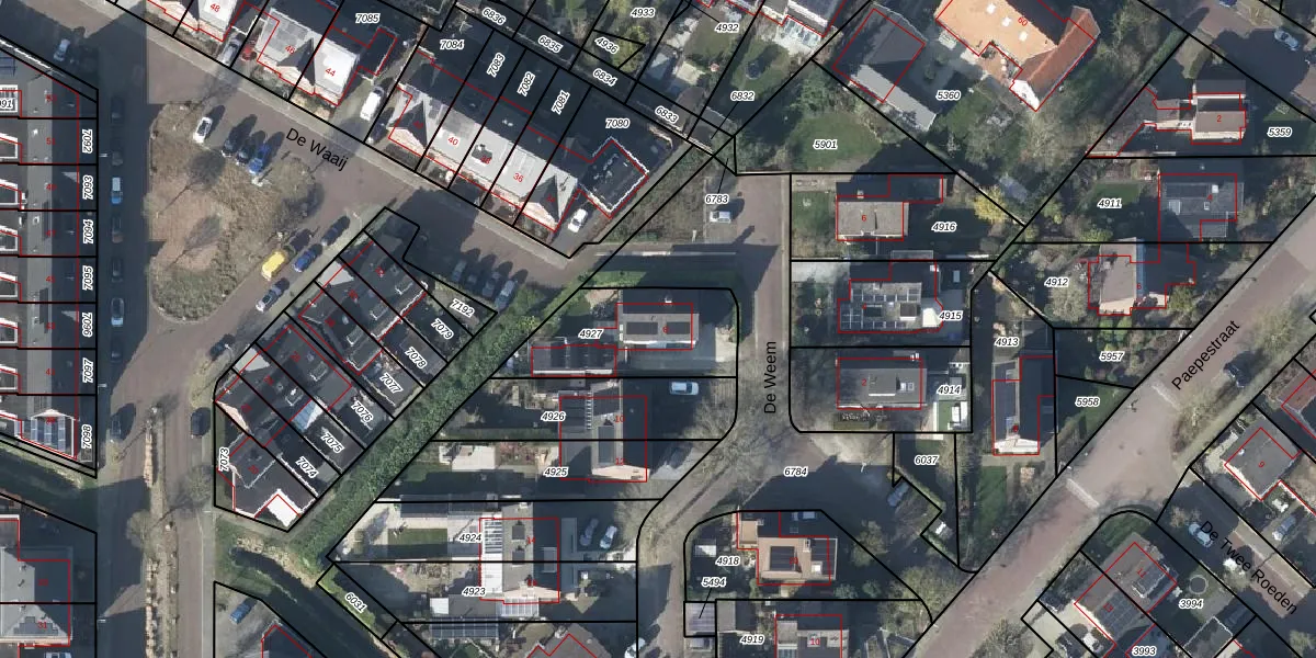 Het perceel waarop De Weem 8 staat heeft een oppervlakte van 417 m². Dit is een groot perceel. De perceeloppervlakte wordt geregistreerd door het Kadaster. Gedetailleerde informatie over de maten van dit perceel kunt u vinden in het rapport Kadastrale kaart met maatvoering van De Weem 8.