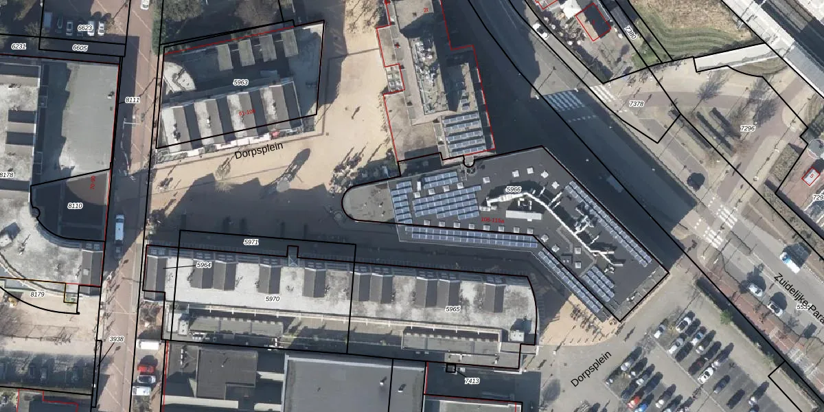 Dorpsplein 107 is gelegen op kadastraal perceel WTV00A5966. Deze kadastrale aanduiding is uniek en wordt gebruikt door het Kadaster om eigendomsrechten en andere zakelijke rechten vast te leggen. Het perceel maakt onderdeel uit van de kadastrale gemeente Westervoort.