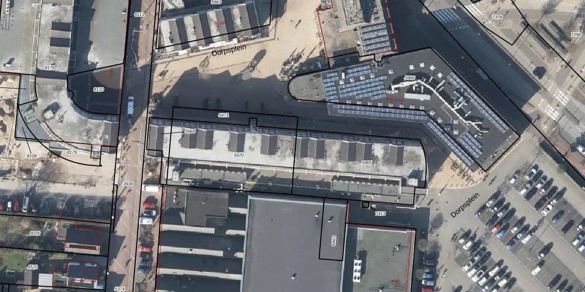 Het perceel waarop Dorpsplein 47 staat heeft een oppervlakte van 967 m². Dit is een groot perceel. De perceeloppervlakte wordt geregistreerd door het Kadaster. Gedetailleerde informatie over de maten van dit perceel kunt u vinden in het rapport Kadastrale kaart met maatvoering van Dorpsplein 47.